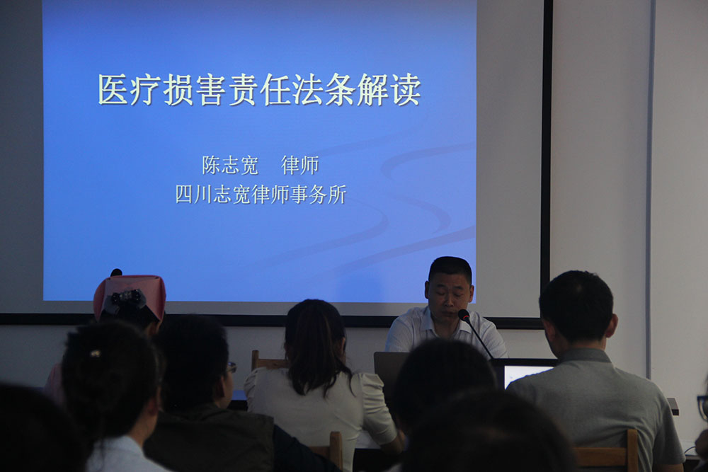陈志宽律师主要对医疗损害责任的相关法条向中医院的全体医务人员进行了讲解、解读,并例举了相关案例进行补充说明。