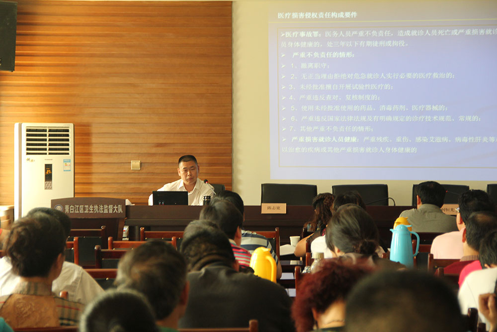 2015年4月29日,我所陈志宽律师受成都市青白江区卫生和计划生育局邀请,为该局中层干部及下属单位各医院院长进行医疗事故责任的预防、处置、医疗损害责任相关法律条文的解读的法律讲座。