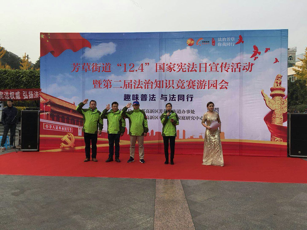 同时在高新区,事务所沈明律师、、何顺明律师、康鹏程律师参加了成都律师公益法律服务志愿队组织的法治知识竞赛游园会,别样的趣味普法不仅增强了广大群众的法律意识,更进一步增强了各个律师的社会责任感。
