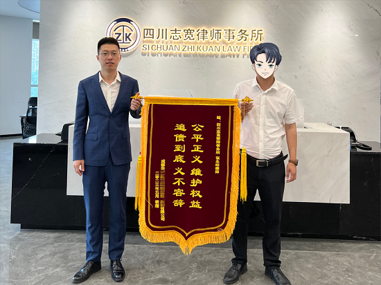 2023年5月22日,成都市某建筑装饰工程有限公司给四川志宽律师事务所张永锋律师送来锦旗,感谢张律师为公司挽回了60余万元的经济损失。